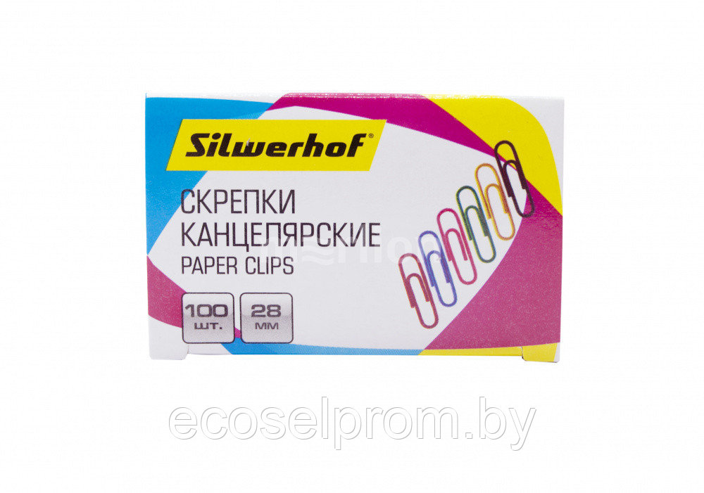 Скрепки Silwerhof 492022 металл пластиковая оболочка 28мм ассорти (упак.:100шт) картонная коробка