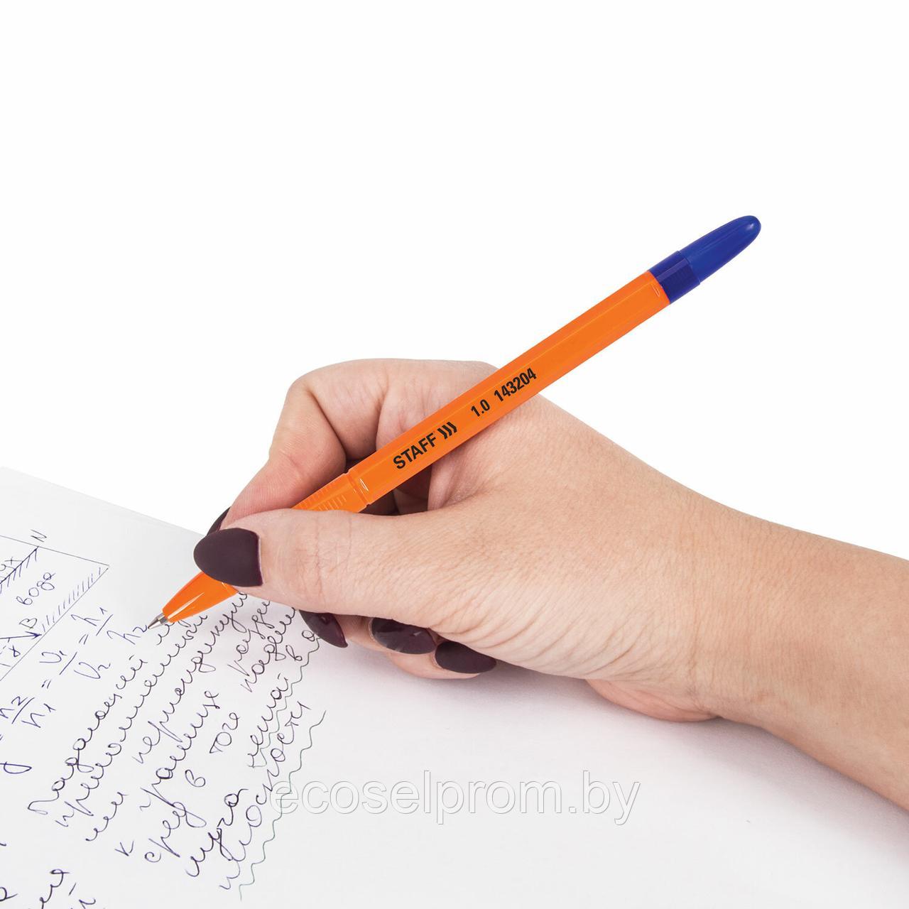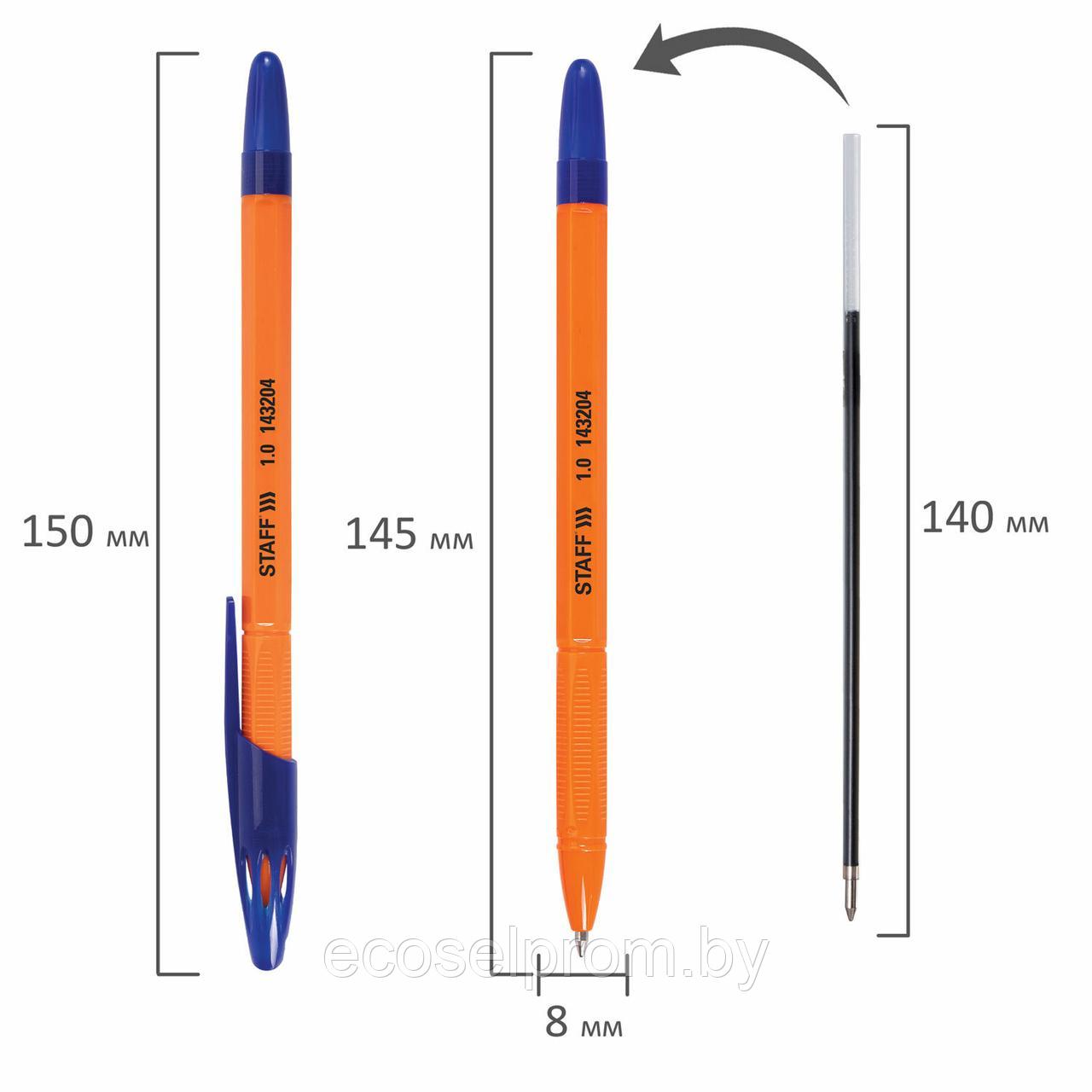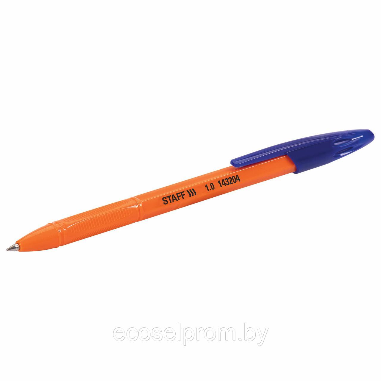 Ручка шариковая масляная STAFF "Basic X-100", СИНЯЯ, корпус оранжевый, узел 1 мм, линия письма 0,7 мм