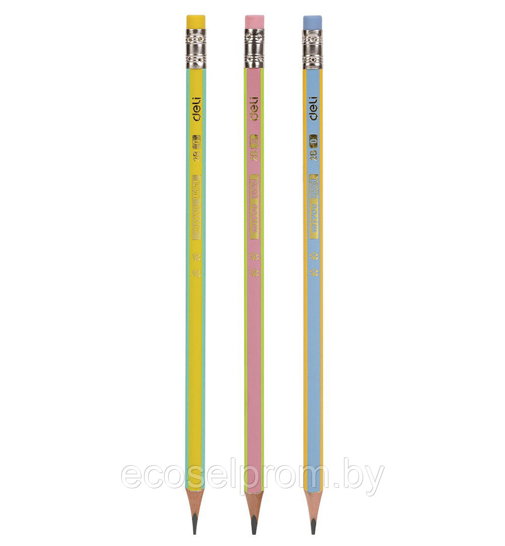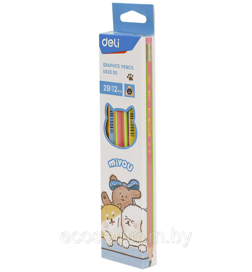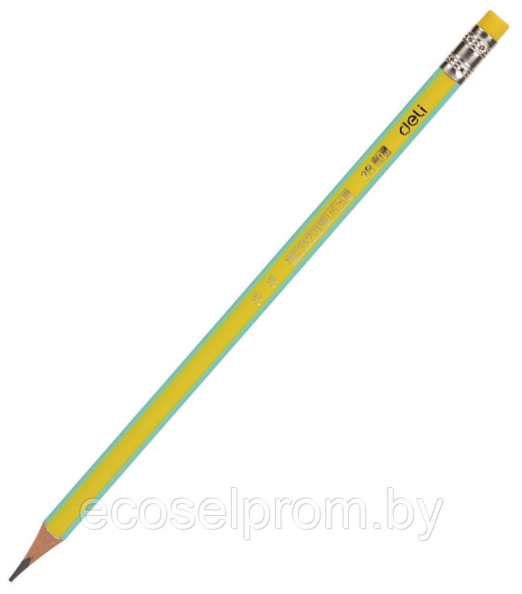Карандаш MiYOU мягкостью 2В, трехгранный, с ластиком, заточенный, предназначен для художественных и графических работ.