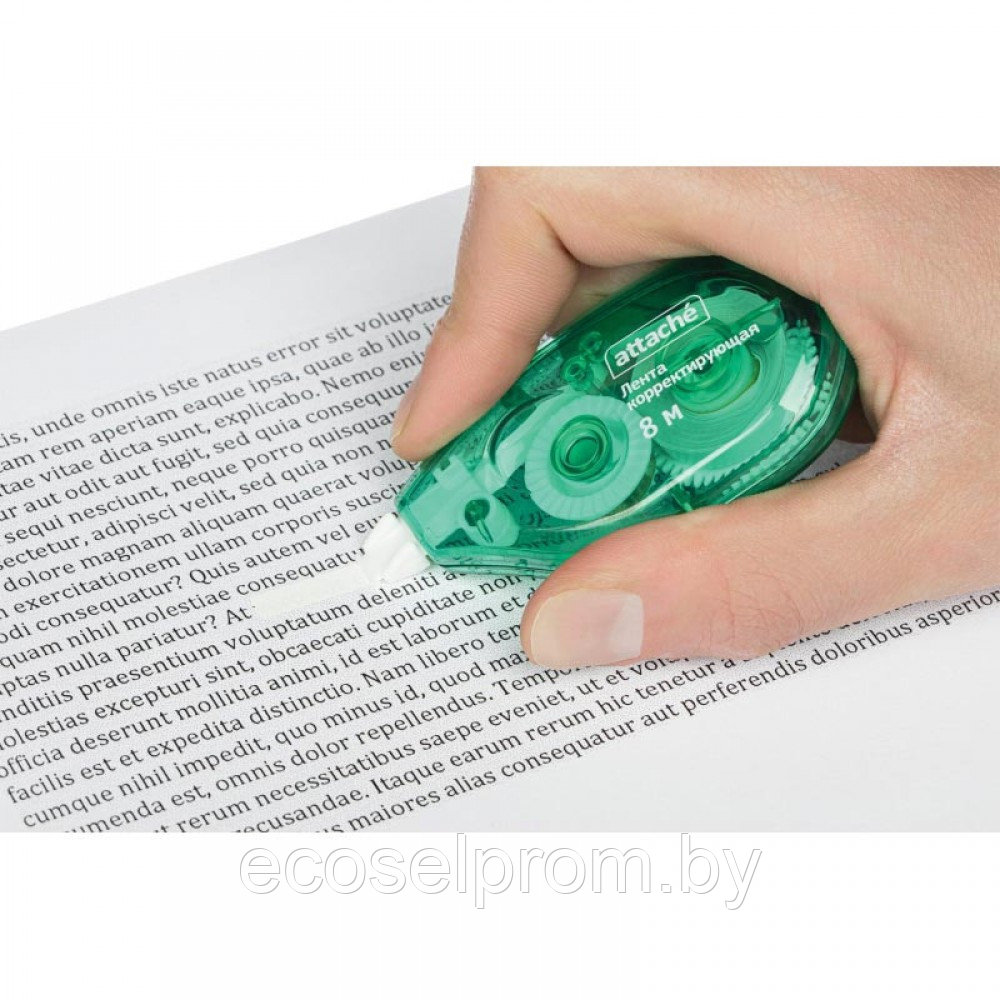 Корректирующая лента Attache предназначена для исправления строчного текста на любом типе бумаги. Не требует длительного высыхания, можно сразу писать по исправленному тексту. Автоматическое подкручивание. Лента не оставляет следов и черных полос на документе при ксерокопировании или отправке по факсу.