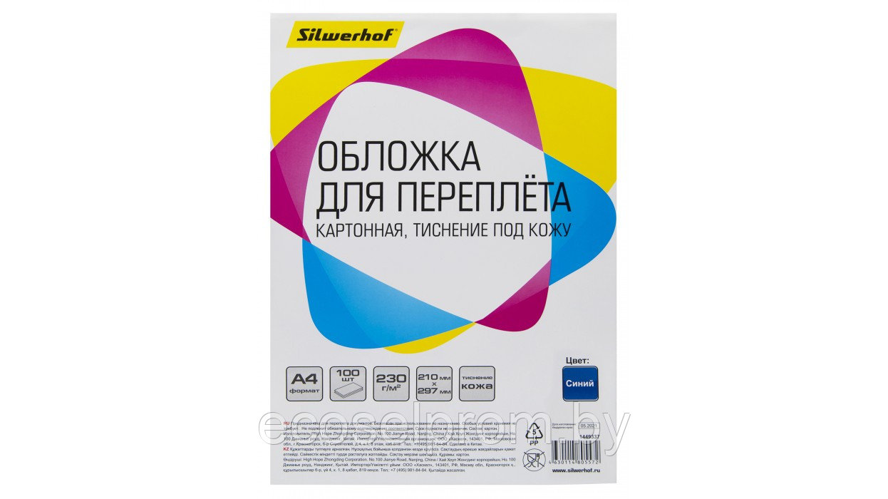 Обложки для переплёта Silwerhof A4 230г/м2 "Кожа" синий (100шт) (1449337)