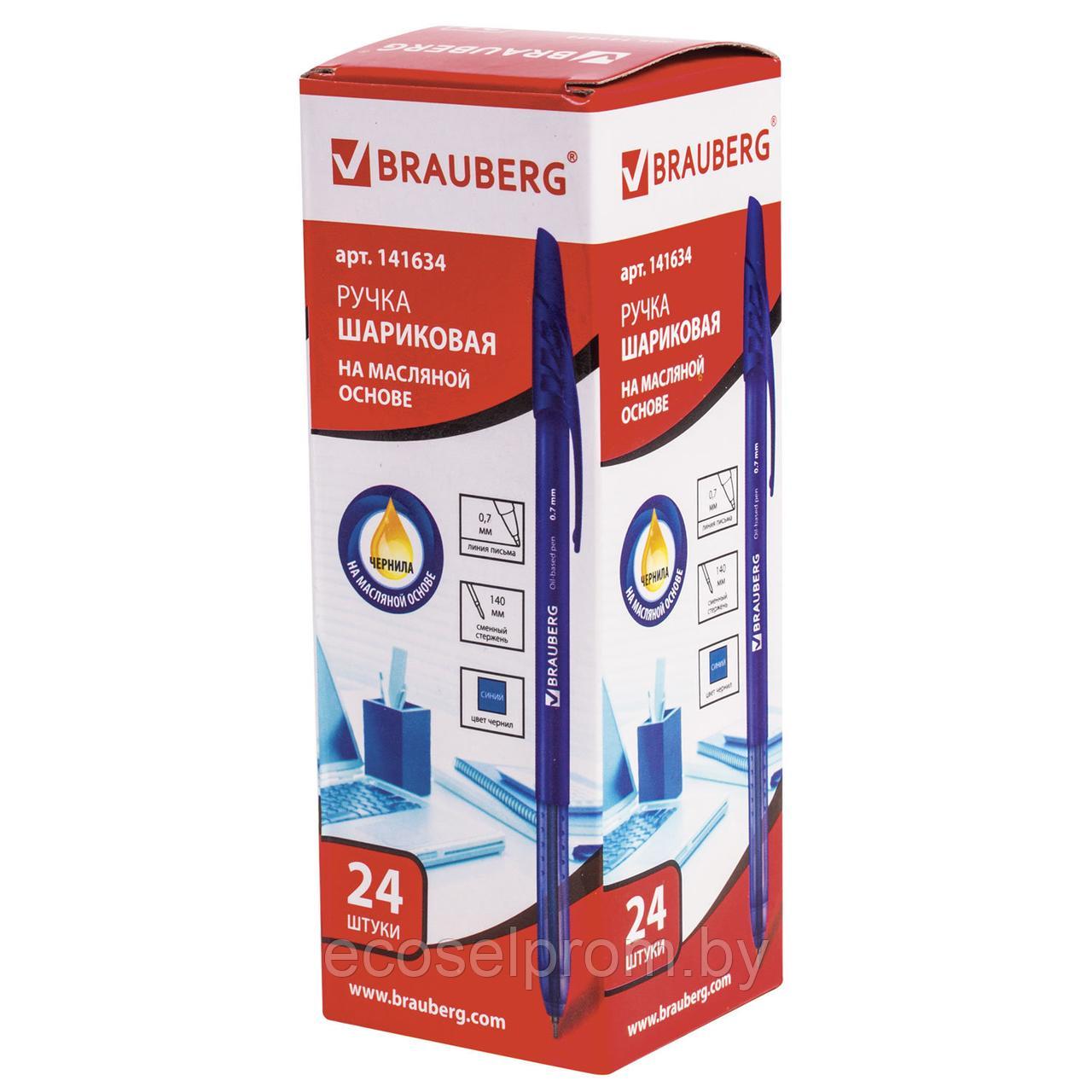 Ручка шариковая масляная BRAUBERG "Oil Base", СИНЯЯ, корпус синий, узел 0,7 мм, линия письма 0,35 мм, 141634